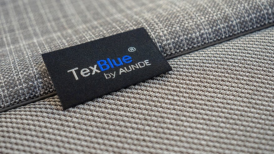 AUNDE utiliza un granulado de botellas recicladas PET que se utilizan para tejer un hilo de color. La calidad del poliéster producido durante este proceso es del mismo nivel que la del material no reciclado.Tex Blue® by AUNDE es el nombre de la linea de productos fabricados con material reciclado y se adaptan a las necesidades del cliente.