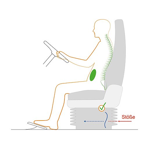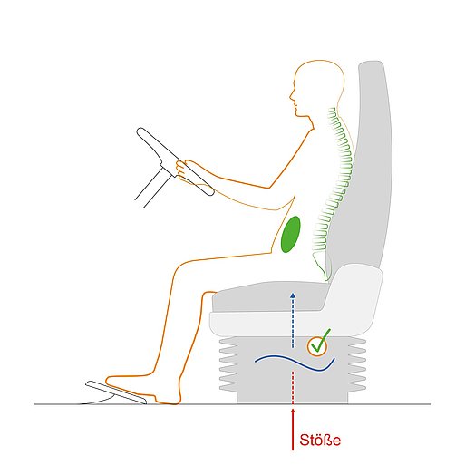 Por eso, en el marco del proyecto "Movimiento en el lugar de trabajo", investigamos continuamente nuevos conceptos de asientos que estimulen el movimiento continuo del conductor y eviten que éste permanezca en una postura estática mientras está sentado.
